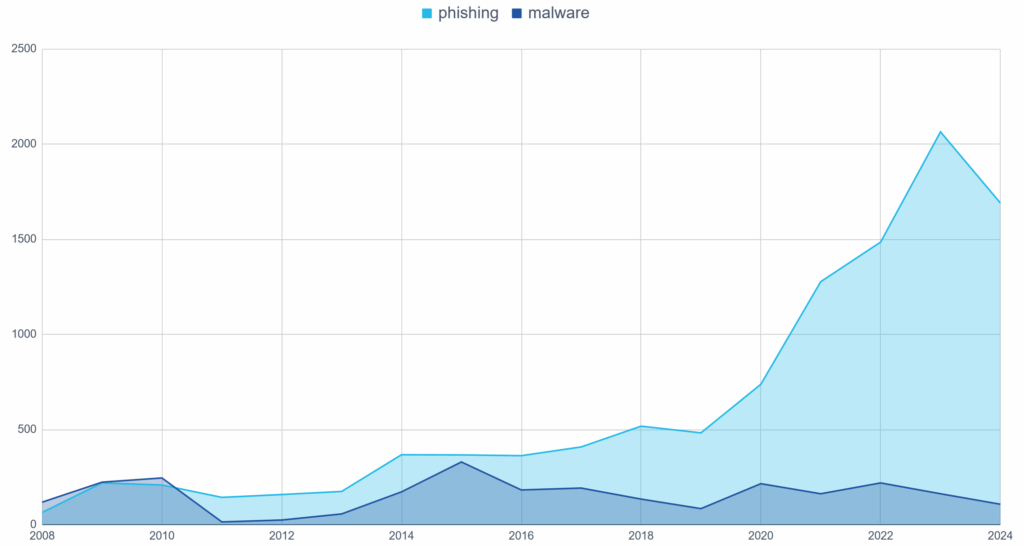 Na grafu je vidět počet řešených bezpečnostních incidentů CSIRT.CZ.